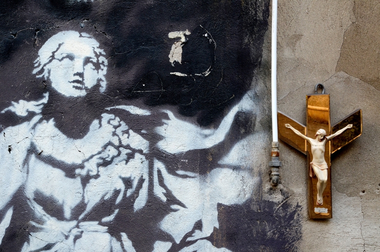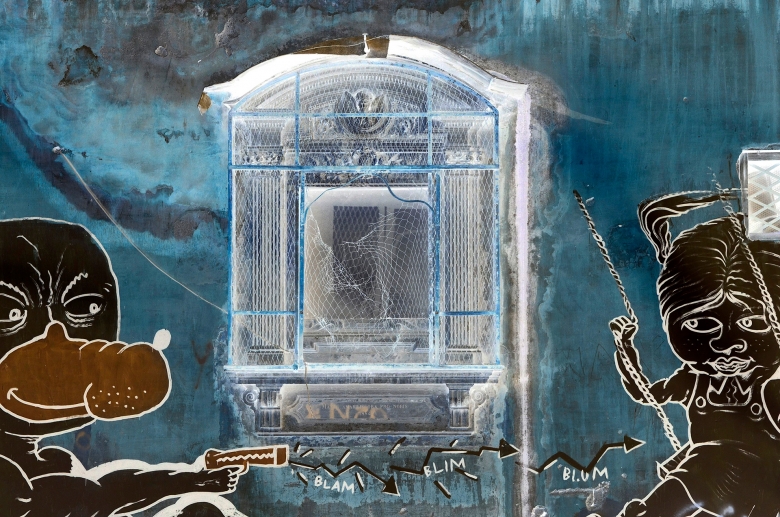 La ville dresse ses murs. A moins que les murs ne dressent la ville, avec leur langage. Au pied du mur, l'on voit l'artiste plus que le maçon. La photographe perçoit le deux et nous donne à penser cette parole de la ville, cri ou...mur mure, d'une humanité présente absente .
